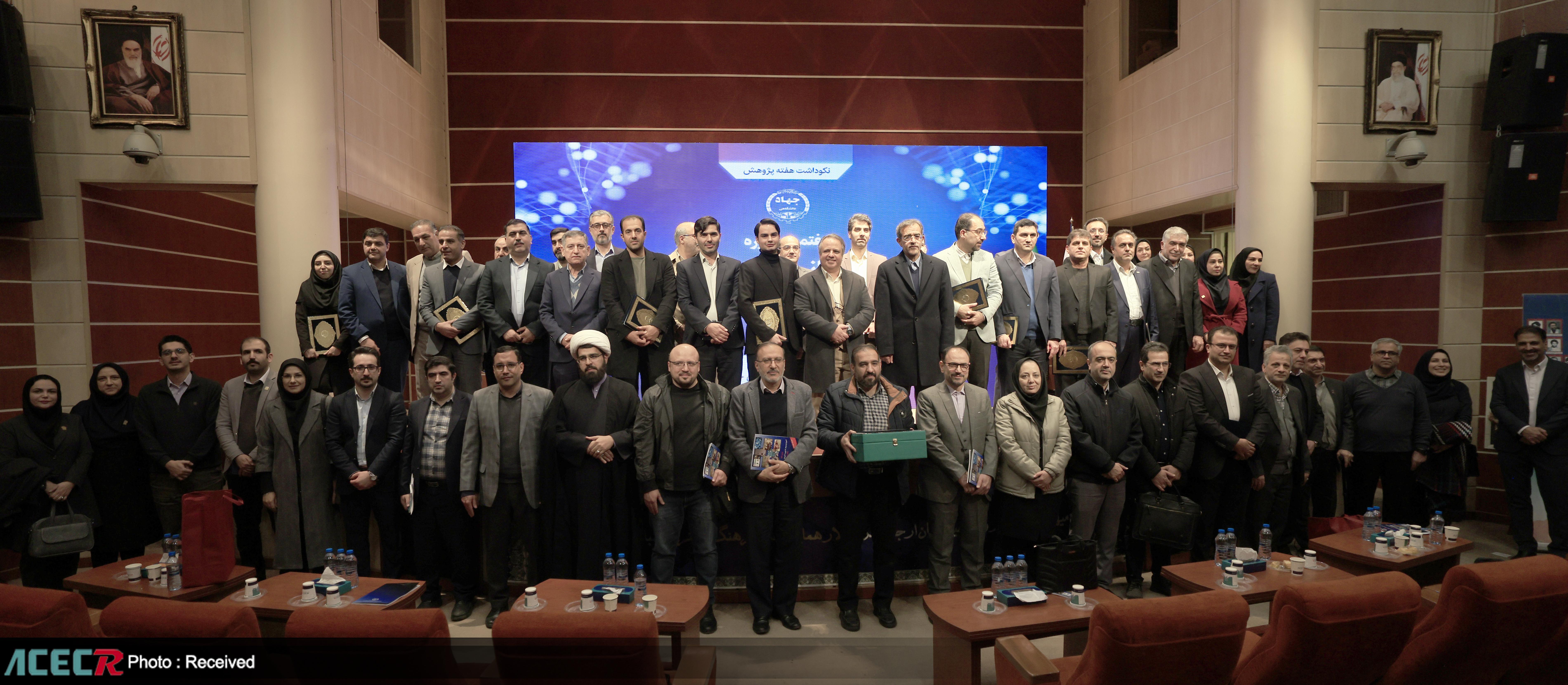 صبح یکشنبه ۳۰ آذر ماه آیین هفتمین دوره تجلیل از برترینهای پژوهش و فناوری جهاددانشگاهی با حضور دکتر علی منتظری، رئیس جهاددانشگاهی و حجت الاسلام والمسلمین مهدی خاموشی، رئیس سازمان اوقاف و امور خیریه در پژوهشکده فرهنگ، هنر و معماری این نهاد برگزار شد.